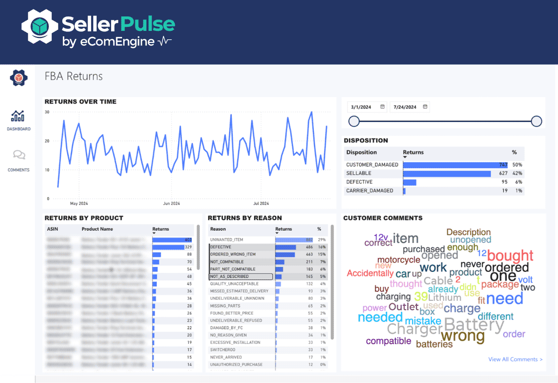 In addition, customers who return a product have to select a reason and leave a comment explaining why they are returning it. These can be a gold mine of data to help you improve your product or listing.
