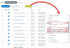 - Set the filters for the ACOS. The recommendation is anything between 1% to 20%